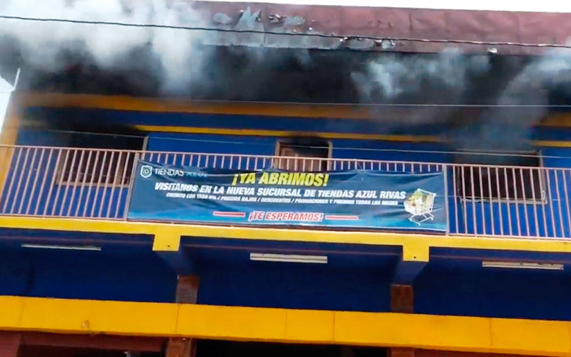 Un voraz incendio ocurrido en horas de la mañana de este martes, consumió totalmente la segunda planta de Tienda Azul ubicada en la ciudad de Rivas. Los pobladores de los alrededores se sumaron para ayudar a sacar la mayor cantidad de productos que se vendían en la tienda.