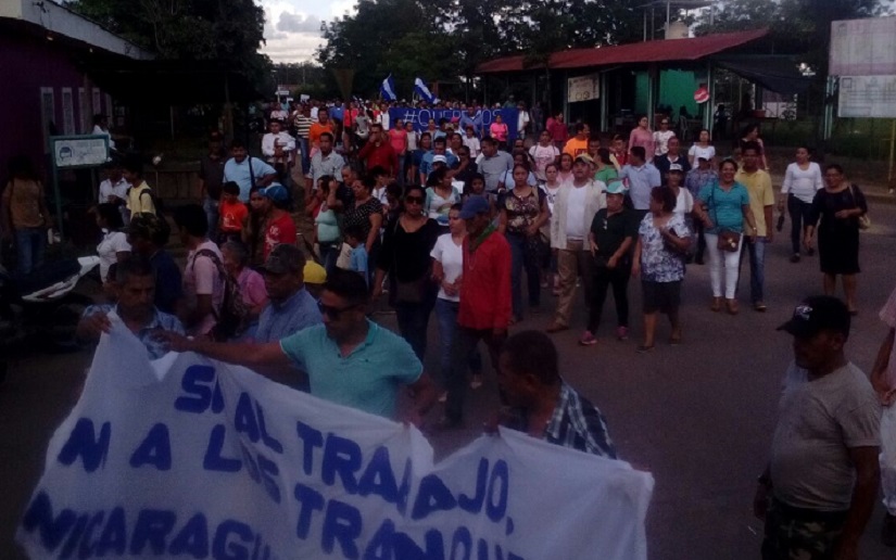 Habitantes del municipio de Nueva Guinea, en Zelaya Central, salieron de sus casas para recorrer cada rincon de la ciudad, en una demostración de apoyo al diálogo convocado por el Presidente Daniel Ortega y en solicitud de la Paz en Nicaragua.