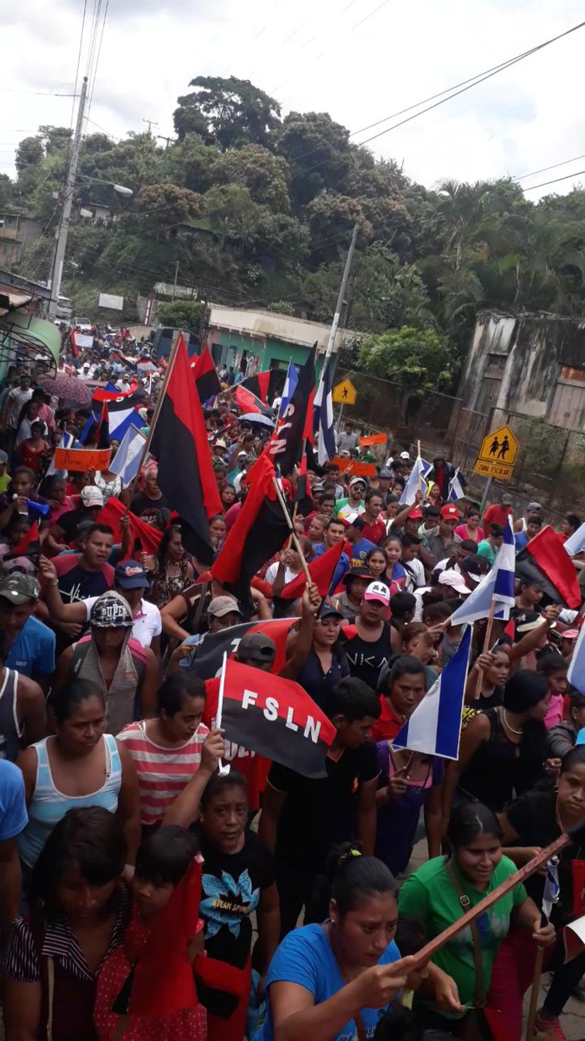 Centenares de pobladores de San Juan del Río Coco, participaron hoy domingo en una masiva caminata en respaldo al Comandante Daniel Ortega, al Diálogo y la Paz.