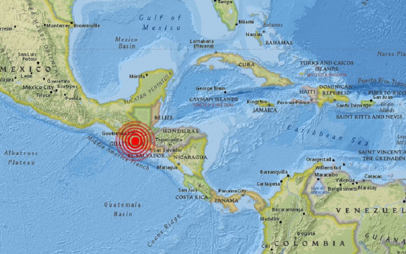 El epicentro del sismo se localizó a cinco kilómetros del municipio de Guanagazapa, en la región sur-central del país, y a una profundad de casi 100 kilómetros.
