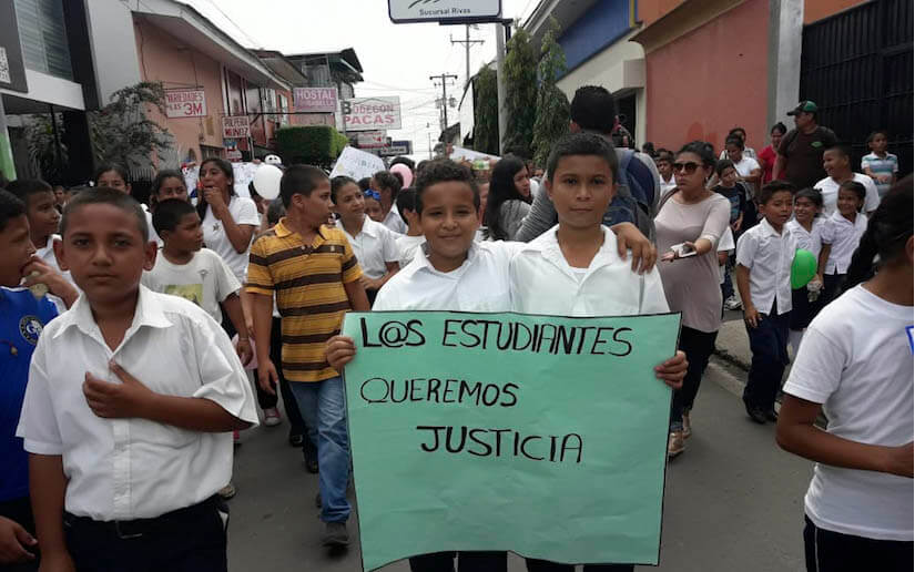 Estudiantes de los diferentes colegios en el departamento de Rivas desfilaron por las principales calles en celebración a su Día, acompañaron la movilización con carteles en los que pedían paz.