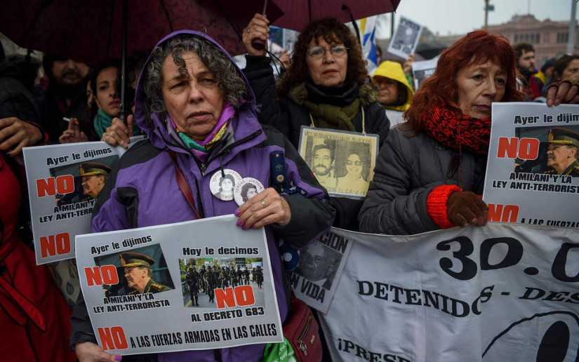 Los manifestantes acusaron a Macri de romper uno de los consensos básicos de la democracia posdictadura, el que vetó que las Fuerzas Armadas puedan realizar tareas de seguridad interna. "El Gobierno está modificando por decreto, que es ilegal, tres leyes que fueron dictadas bajo tres gobiernos distintos: la ley de Defensa nacional, de 1988, que promulgó Alfonsín, la ley de Seguridad interior es de 1992 y la promulgó Menem y la ley de Inteligencia nacional es de 2001 y la promulgó de De la Rúa. Esos consensos suprapartidarios elaborados a lo largo de 35 años que el actual Gobierno está agrediendo", señaló el director ejecutivo del Centro de Estudios Legales y Sociales (CELS), Horacio Verbitsky.