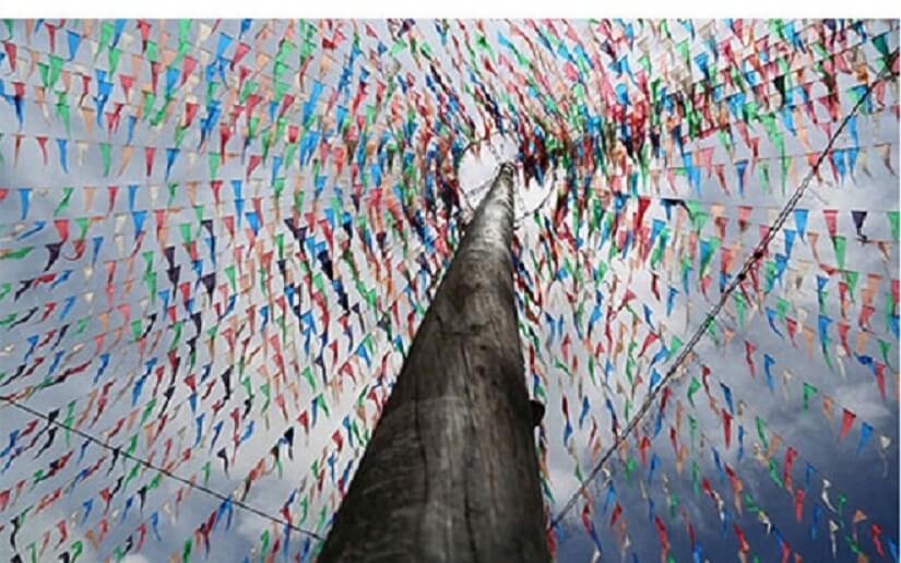 El palo lucio es de madera y mide 12 metros de altura, está bañado de grasa para que se dificulte llegar a la cima y obtener uno de los premios.