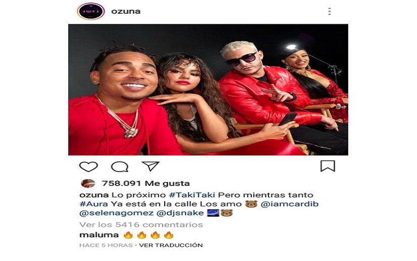 Según “People” los artistas se encuentran grabando un nuevo vídeo musical, el cual saldrá muy pronto. Y es que el cantante Ozuna en una entrevista había dicho que quería tocar nuevas puertas de diferentes países, con artistas internacionales. En una publicación Ozuna escribió “Lo próximo #TakiTaki Pero mientras tanto #Aura Ya está en la calle Los amo @iamcardib @selenagomez @djsnake”