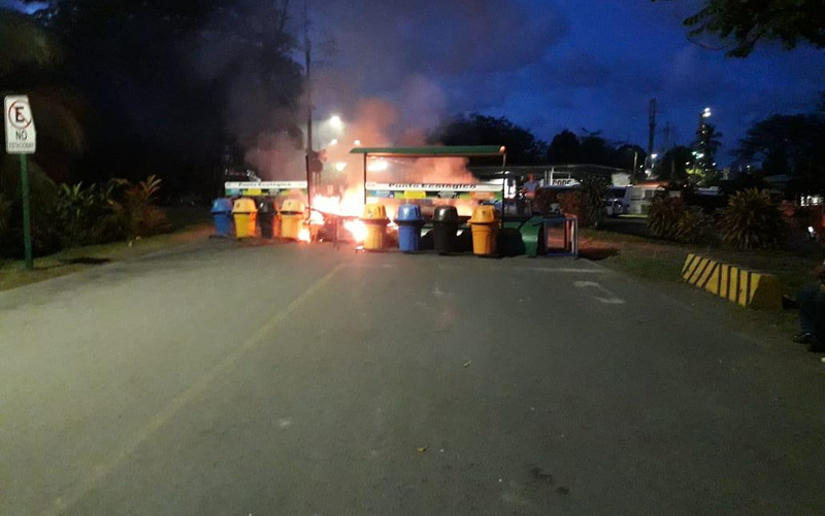 Personas no identificadas prendieron fuego esta noche a barricadas cerca de la entrada de Recope en Moín, Limón, en protesta por un nuevo proyecto fiscal, informó el portal web Costa Rica hoy.
