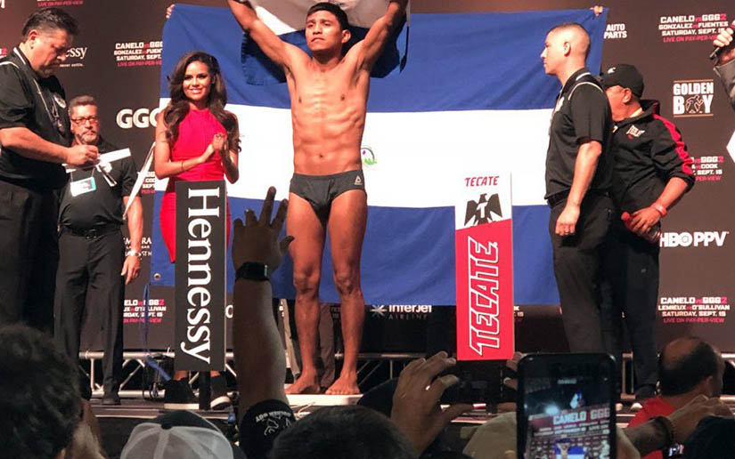 114.8 libras marcó el púgil nicaragüense en la báscula en tanto su contrincante Fuentes marcó 116.