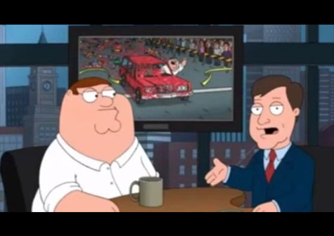 En las imágenes de dicho episodio, un comentarista de deportes le pregunta al protagonista, Peter Griffin, sobre su participación en el maratón. De repente, se ve a Peter recordando el evento y atropellando a los corredores con su vehículo. En ese capítulo, Peter se hace amigo de un terrorista que planea llevar a cabo un atentado. En cuanto llama por teléfono a su nuevo amigo, se escuchan dos explosiones, la misma cifra de detonaciones ocurridas durante el maratón de este lunes.