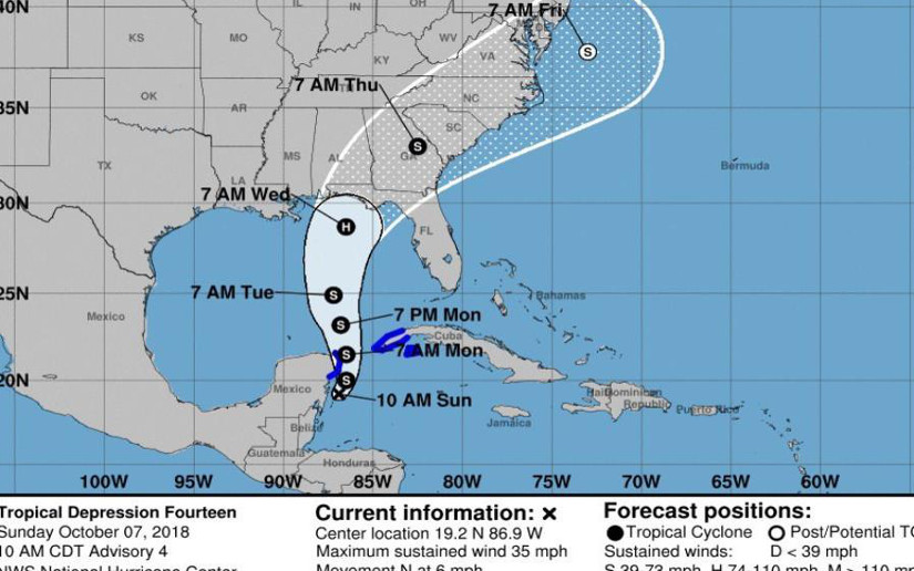 Florida se encuentra en fase de emergencia por la tormenta tropical Michael, que se formó este domingo en las cálidas aguas del Caribe mexicano y amenaza con transformarse en un huracán que pudiera llegar con fuertes vientos y lluvias torrenciales al noroeste del estado.