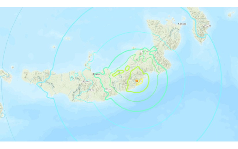 Los epicentros de dos de los terremotos se ubicaron a aproximadamente 115 kilómetros al sureste de la ciudad de Kimbe, en la costa norte de la isla de Nueva Bretaña, mientras que el epicentro del tercero se ubicó a 94 kilómetros de la ciudad de Kokopo.