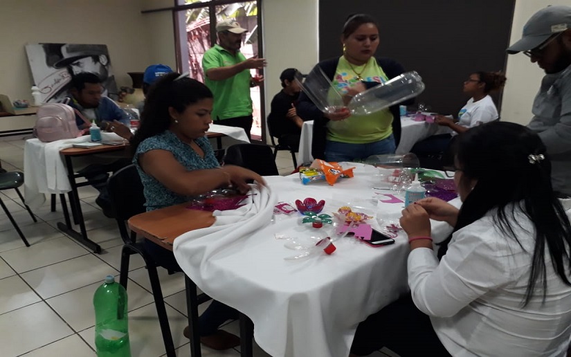 El Movimiento Ambientalista Guardabarranco ha realizado talleres de manualidades, elaborando flores a base de materiales reciclados, en los distintos puntos del país, promoviendo el cuido y el amor a la Madre Tierra. En donde esta mañana se reunieron en el Auditorio Arlen Siu del Ministerio de Juventud (MINJUVE), con la participación de 30 promotores ambientales de Managua.
