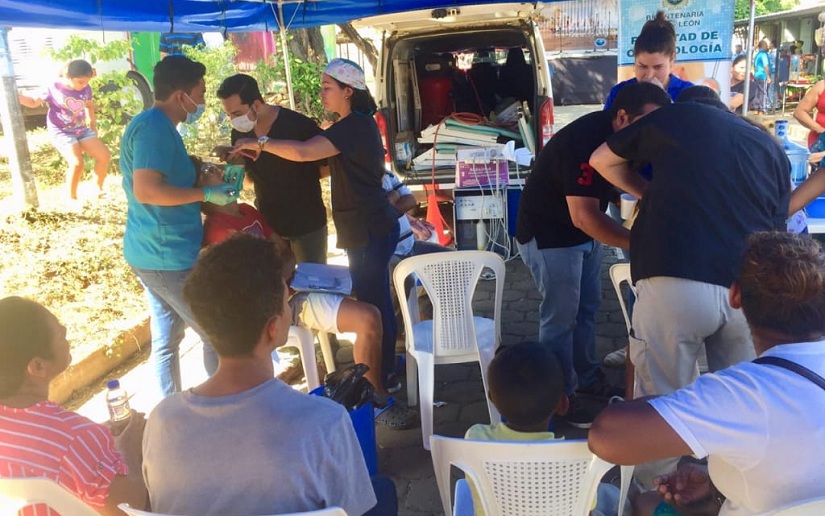 Un total de 150 estudiantes universitarios que participan del tercer encuentro centroaméricano y caribeño, apoyaron una feria de la salud, en las afueras del centro médico "Perla María Norori", en la ciudad de León.