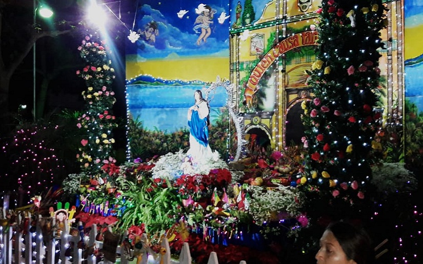 Autoridades municipales de la alcaldía de San Marcos, Carazo, inauguraron el altar en honor a la Virgen María y el ambiente navideño en el parque Central de la ciudad.