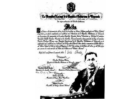 El acta de juramentación de Nicolás Maduro como Presidente de la República circula este martes en la Gaceta Oficial Nº 40.151. En el documento se presenta la imagen del fallecido mandatario Hugo Chávez.