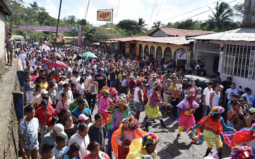 A su llegada al municipio de Diriomo, la imagen de la virgen María recibe a los peregrinos acompañado de centenares de diriomeños que recorren la calle principal hacia su templo, durante su recorrido el folclore se mezcla a la religiosidad que viven los católicos.