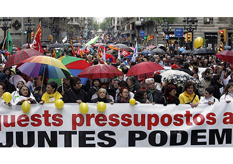 Esta semana de protestas en España concluye con una marcha de ambiente festivo en Barcelona. Los barceloneses han salido a las calles para protestar contra la drástica política de austeridad, principalmente en la sanidad y la educación.