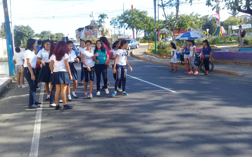 Los jóvenes recorrieron la carretera y las calles de la Ciudad de las Flores bajo el resguardo de la Policía Nacional.