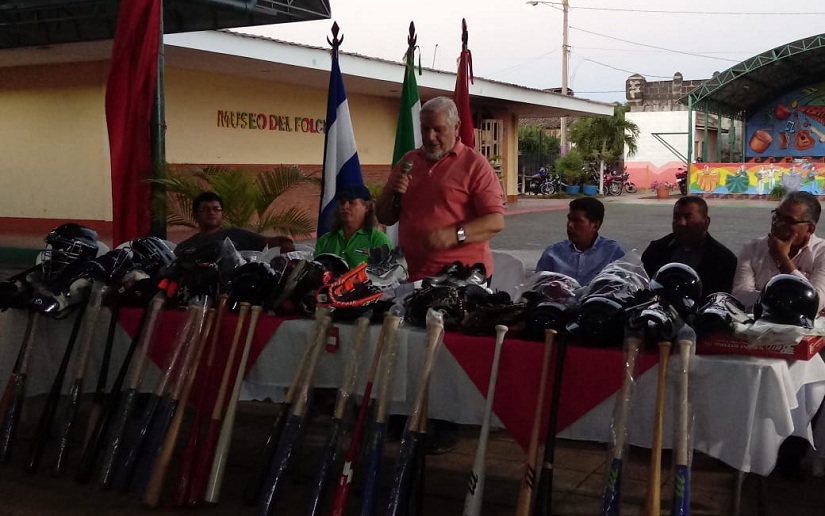 Las alcaldías del departamento de Masaya hicieron entrega de uniformes y utillajes deportivos a todo el joven equipo de béisbol de las Fieras del San Fernando, en los corredores del Centro Cultural Mercado de las Artesanías.