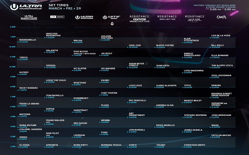Algunos Djs, que estarán en el Miami Marine Stadium, son Tiësto Alesso, Zedd, Armin Van Buuren, David Guetta, The Chainsmokers, Deadmau5, por mencionar algunos.