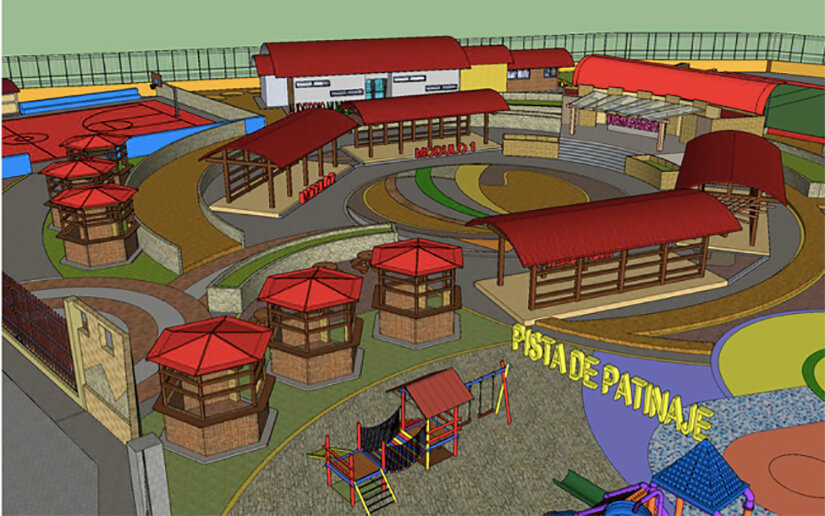 La primera etapa tendrá un parque de ferias, cancha multiusos, cancha de fútbol sala, área de juegos para niños, pista de patinaje, gimnasio al aire libre, tarima de presentación, auditorio para 100 personas, áreas verdes, parqueo y servicios higiénicos, entre otras facilidades.