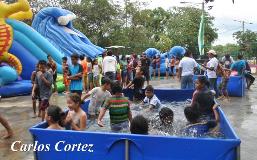 Las familias del barrio indígena de Monimbó en Masaya, disfrutaron el último día de las vacaciones de verano en el parque acuático instalado en el Corozal por la alcaldía municipal.