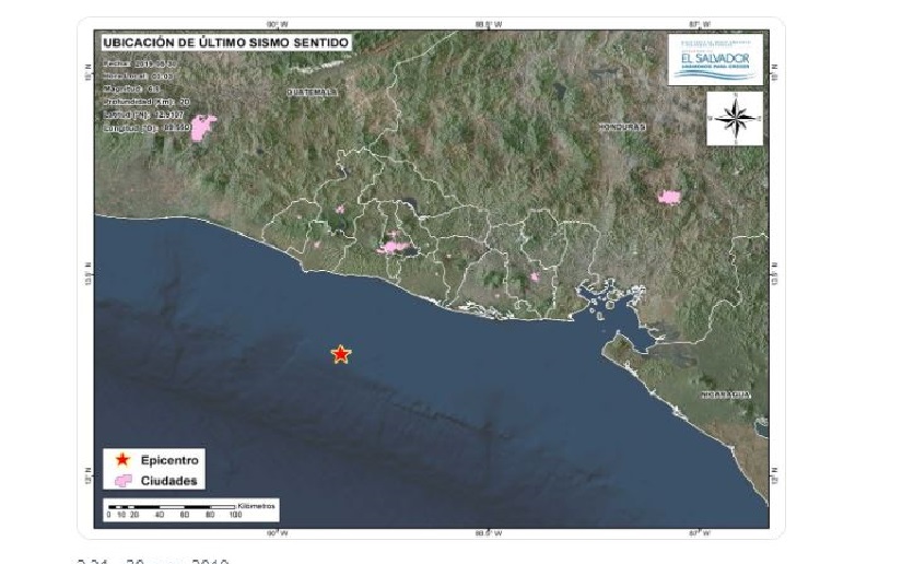 Según datos del MARN, la magnitud del movimiento telúrico ha sido de 6,8, y tuvo su epicentro a 66 kilómetros al sur de Playa Mizata, a una profundidad de 48 kilómetros. Por el momento, se han registrado también 12 réplicas del sismo, con magnitudes entre 3,3 y 4,9, ha comunicado el Ministerio.