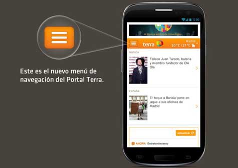 Terra lanzó este miércoles un nuevo menú de navegación para la versión mobile de su sitio. Ahora, cuando el usuario accede al portal desde un smartphone, un único botón permite ingresar a distintos canales de contenidos - Noticias, Deportes, Entretenimiento, Vida y Estilo, Economía, entre otros.