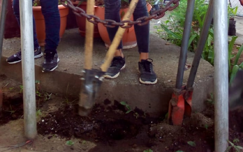 La Federación de Estudiantes de Secundaria llevó a cabo esta mañana, la siembra de plantas ornamentales en el Colegio Público Augusto C. Sandino de Ciudad Sandino.