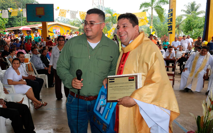 Durante la eucaristía en la que participaron autoridades regionales, departamentales y municipales del FSLN, el alcalde del municipio de Rosita entregó la distinción de Hijo Dilecto al Sacerdote.