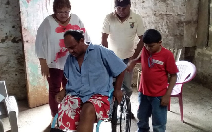 Manuel Salvador Sánchez Gutiérrez protagonista que forman parte del programa Todos con Voz en el municipio de Jinotepe, recibió de manos de las autoridades del Ministerio de Salud y el gobierno local una silla de rueda.