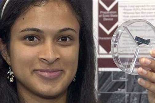 El dispositivo creado por Esha Khare, de 18 años, almacena más energía en un espacio más pequeño que las baterías de teléfono tradicionales.