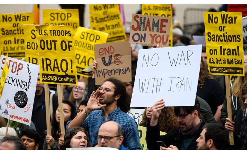 La agencia de noticias Reuters informó que grupos de manifestantes salieron a las calles de Washington y otras ciudades de Estados Unidos el sábado para protestar por el ataque aéreo en Irak ordenado por el presidente Donald Trump, que mató al comandante militar iraní Qassem Soleimani y la decisión del gobierno Estadounidense de enviar unos 3.000 soldados más al Medio Oriente.
