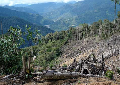 "Las plantaciones se cosechan con gigantescas máquinas que cortan y mueven árboles enteros como si fueran ramitas", describe Harrabin.