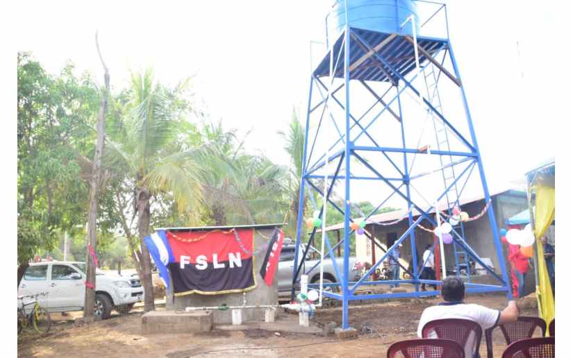 Y el apoyo comunitario fue de 75 mil córdobas en concepto de torre para tanque de almacenamiento, caseta de controles, sarta de descarga, acometidas y zanjeo.
