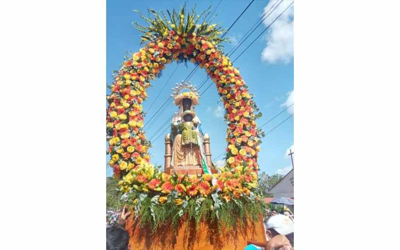 En el día principal de las fiestas patronales la feligresía católica acompañó la imagen de la virgen morena de Montserrat que se encontró con las imágenes de San Juan Bautista, Santiago y San Marcos, en Sapasmapa en el municipio de La Concepcion, en Masaya.