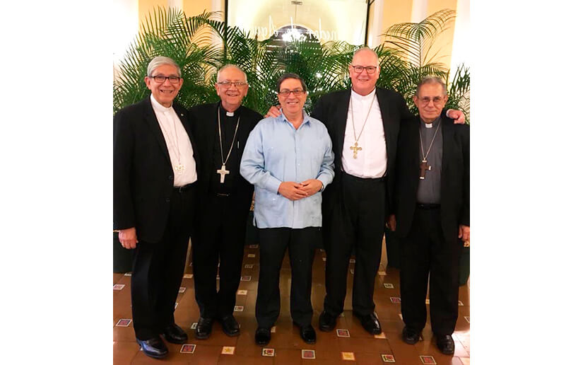 “Un placer reencontrarme #LaHabana con Su Eminencia @CardinalDolan, Arzobispo de Nueva York. En encuentro participaron también el Cardenal Juan de la Caridad García Rodríguez, Arzobispo de La Habana y el Obispo Emilio Aranguren, Pdte de la Conferencia de Obispos Católicos de Cuba”, escribió el canciller Rodríguez.