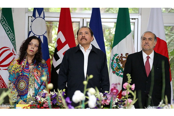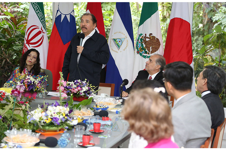 El Presidente de la República, Comandante Daniel Ortega Saavedra y la Compañera Rosario Murillo, Coordinadora del Consejo de Comunicación y Ciudadanía, recibieron las cartas credenciales de los nuevos embajadores de Irán, China-Taiwán, México y Japón.