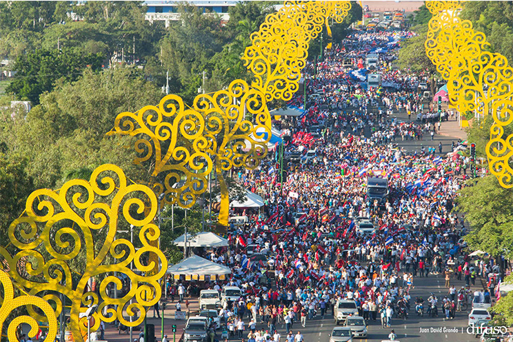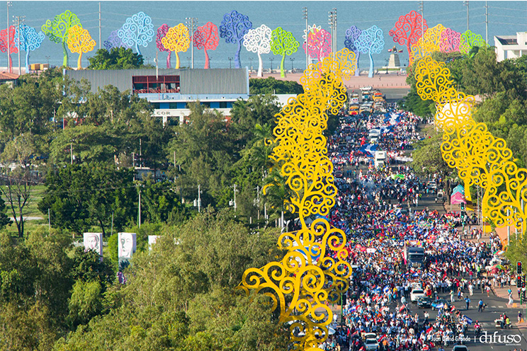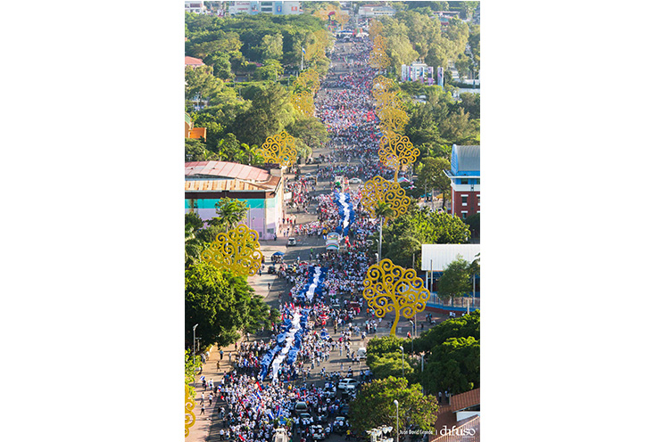El pueblo nicaragüense se desbordó este martes en las calles de Managua, para alzar las banderas de la Paz y el Trabajo, durante una inmensa caminata llena de amor, alegría y juventud vibrante, celebrando las importantes Rutas de Prosperidad trazadas por el Gobierno Sandinista, conducido por el Presidente Daniel Ortega y la compañera Rosario Murillo.