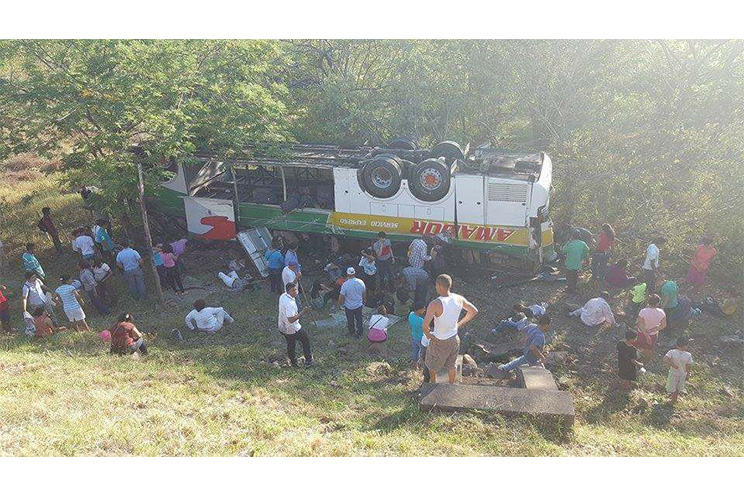Tres muertos y 25 heridos es el resultado de un accidente de tránsito ocurrido esta mañana en la comunidad El Caracol, a la altura del kilómetro 55 de la carretera a El Rama.