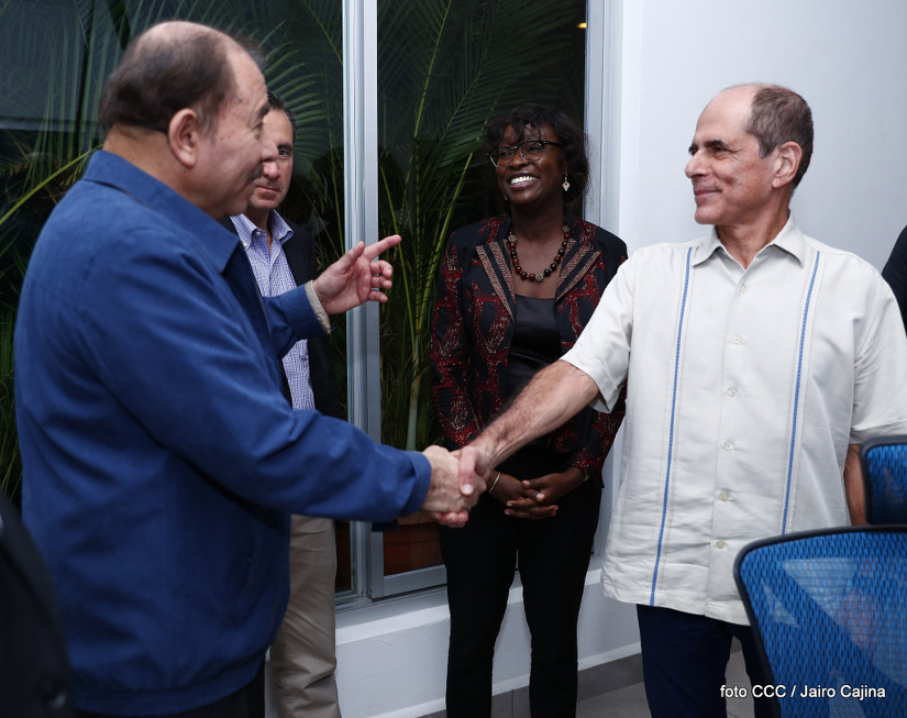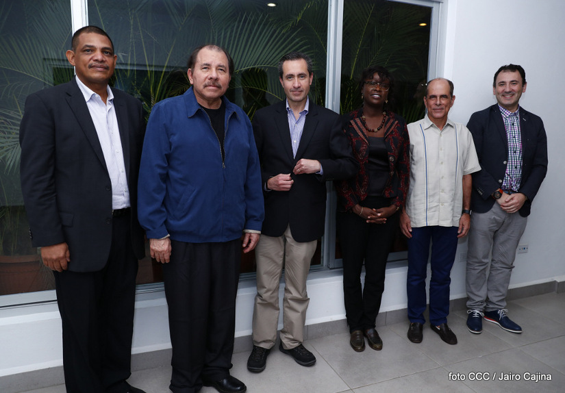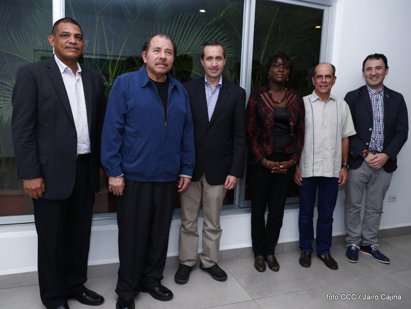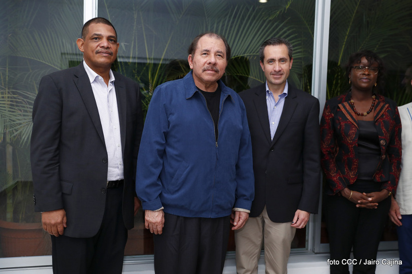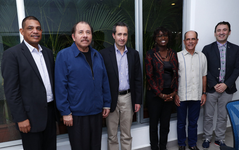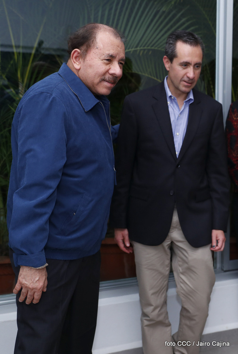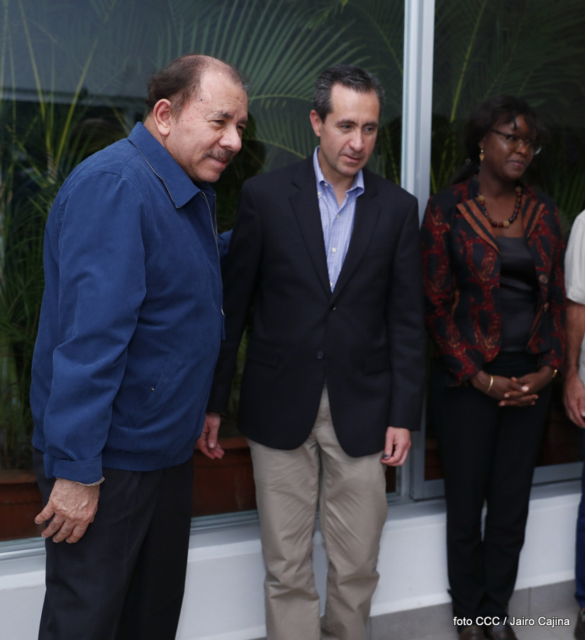 En el encuentro con el mandatario nicaragüense estuvieron Jorge Familiar, Vicepresidente del Banco Mundial; Seynabou Sakho, Directora del Banco para Centroamerica; Luis Constatino, Representante de Banco Mundial en Nicaragua; Norman Rodríguez, enlace técnico del MHCP para la cooperación bilateral; y el Ministro Iván Acosta Montalván.