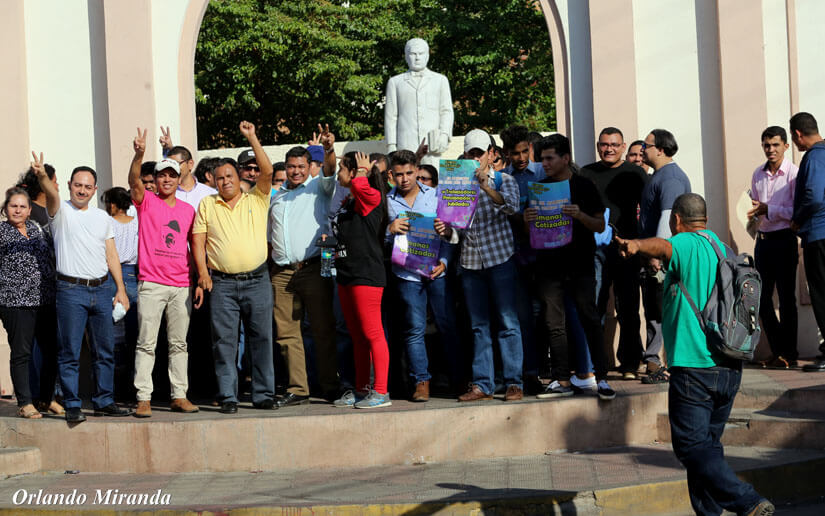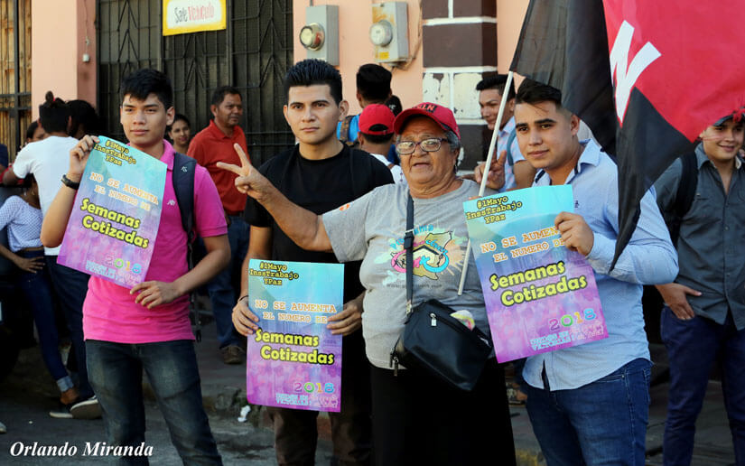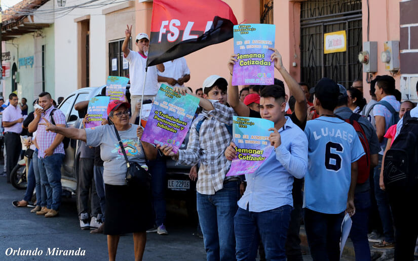 Movimientos de Juventud Sandinista, trabajadores, estudiantes universitarios y sindicalistas, en medio de un ambiente festivo han manifestado su apoyo total a las medidas que abonan a la estabilidad y fortalecimiento del Seguro Social.