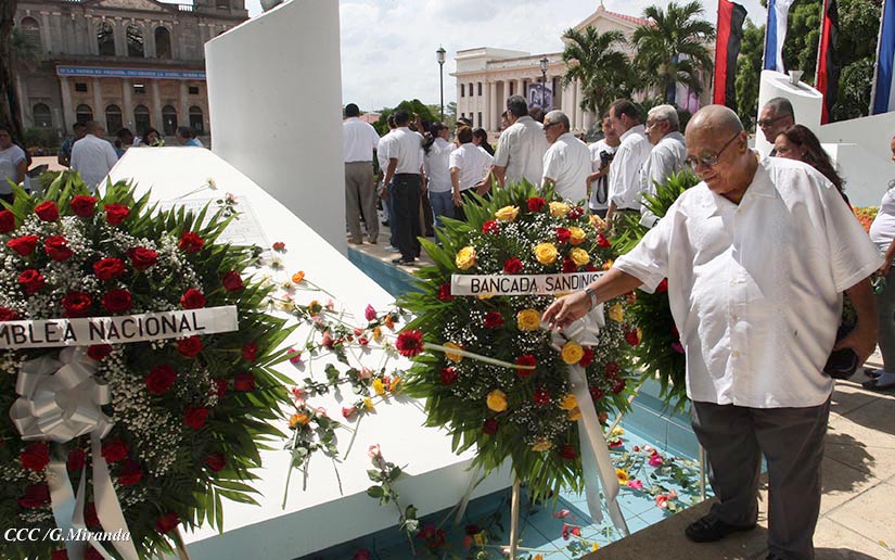 Diputados de la Asamblea Nacional y trabajadores administrativos de ese poder del Estado, ratificaron el mensaje de paz para Nicaragua durante el homenaje que dedicaron al Comandante Tomás Borge Martínez, a 6 años de su tránsito a la inmortalidad.