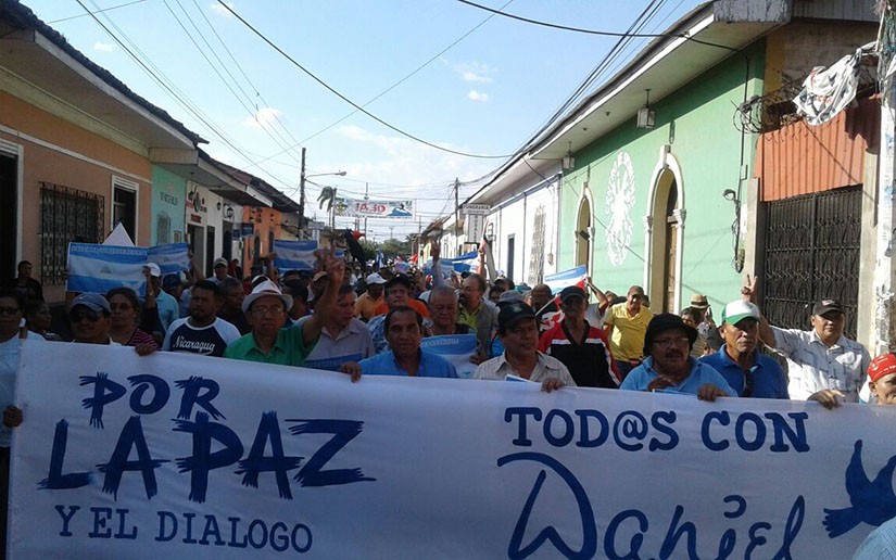 En la Primera Capital de la Revolución la consigna "Sandino Vive, la Lucha Sigue", se combinó con la de "No a la violencia, queremos la Paz".