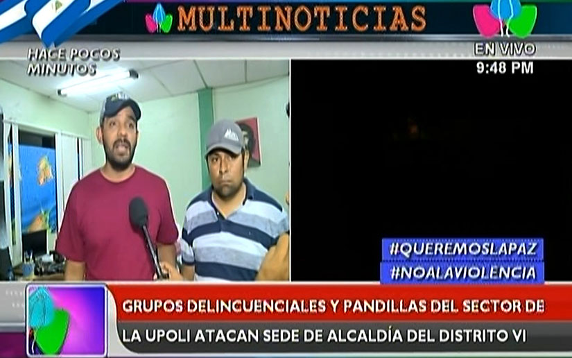 Grupos delincuenciales, pandillas y vándalos de la derecha está tratando de incendiar y saquear las instalaciones del Distrito Seis de la Alcaldía de Managua, informó esta noche Multinoticias, Canal 4, en un video dramático donde uno de los trabajadores narra lo que está ocurriendo en el exterior del inmueble.