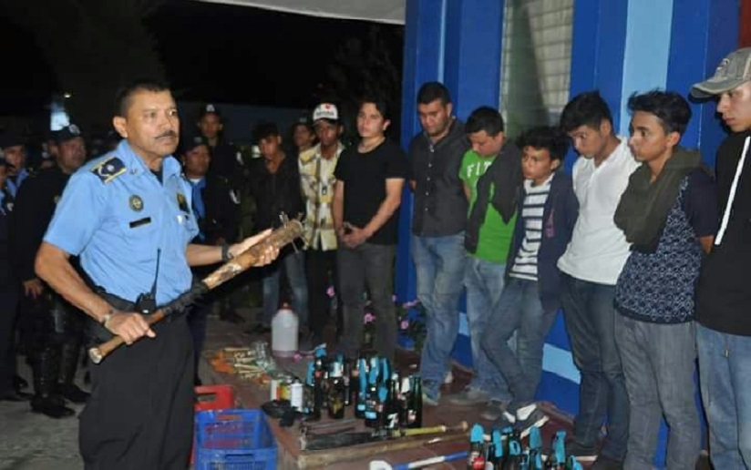 Alrededor de 17 jóvenes originarios de Jinotega fueron capturados por la Policía Nacional y entregados a sus padres luego que se les encontrara en posesión de huleras, bombas molotov, bates con púas, entre otras armas de fabricación casera.