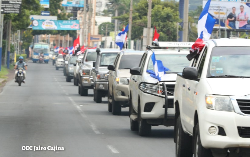 “En esta caravana participaron alrededor de 600 vehículos y más de 500 motocicletas, todas portando la bandera del FSLN y la de Nicaragua, como símbolo de patriotismo. Estamos pidiendo justicia para las víctimas del terrorismo golpista y que paguen con cárcel”, dijo el compañero Pedro Orozco, coordinador de esta inmensa caravana.