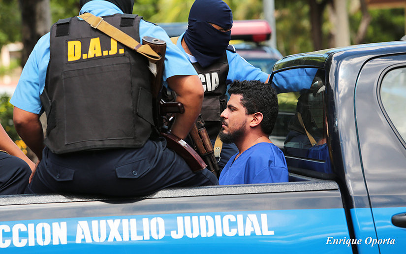El primer reo presentado por el jefe policial fue Ronald Iván Enrique Delgado, quien cometió los delitos de secuestros, lesiones, amenazas de muerte y posesión ilegal de armas de fuego en perjuicio del Estado de Nicaragua y de la sociedad nicaragüense.
