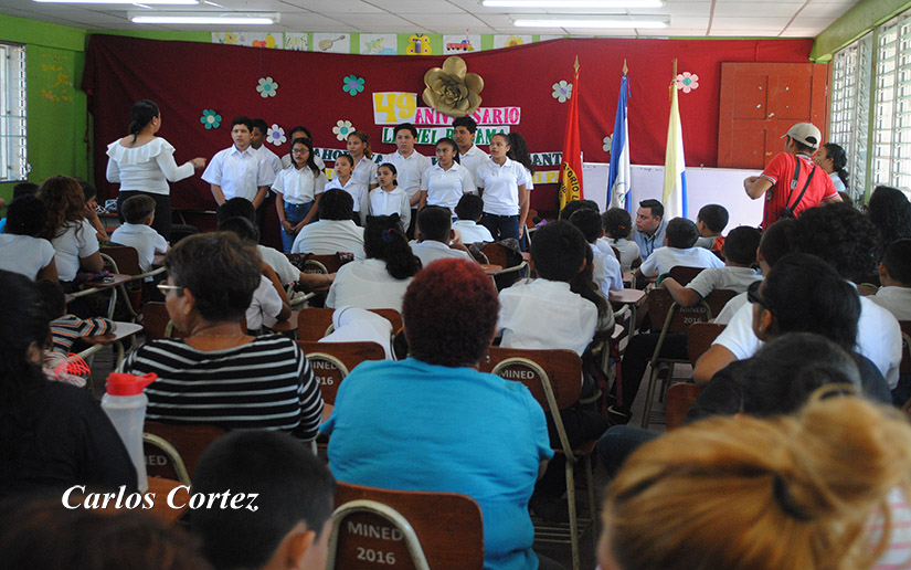 “Hoy recordamos a nuestro poeta Leonel Rugama, un joven que demostró su amor a Nicaragua, la que defendió con valentía hasta sus últimos instantes de vida y que con el paso de los años se ha convertido en un ejemplo para nuestros niños, a quienes les compartimos la historia de Rugama en el desarrollo de las asignaturas”, expresó Heymi Altamirano.