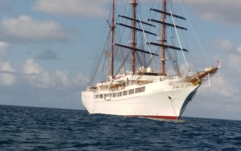 El crucero SEA CLOUD II llega con 77 pasajeros y 63 tripulantes.