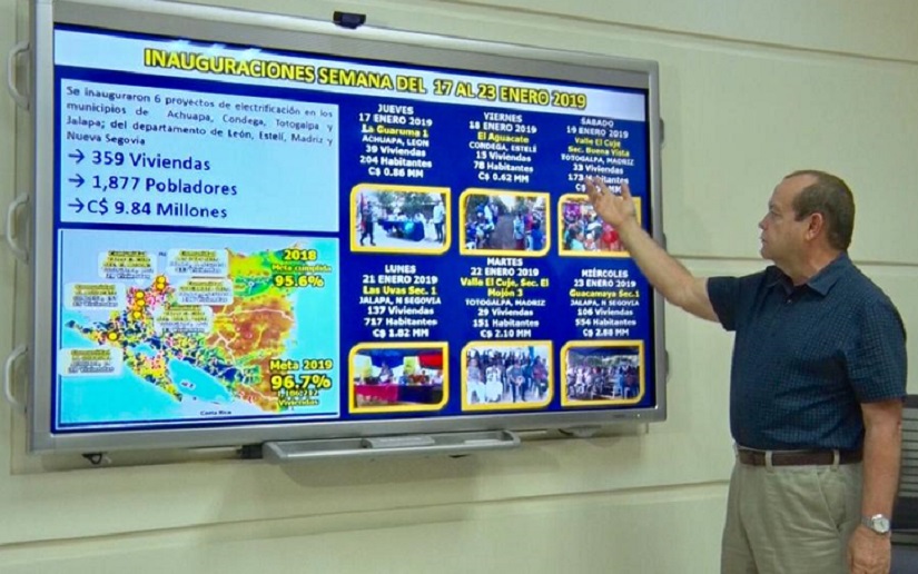 En la última semana se inauguraron 6 proyectos de electrificación en los municipios de Achuapa, Condega, Totogalpa y Jalapa, del departamento de León, Estelí, Madriz y Nueva Segovia.