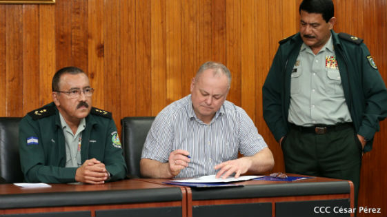 Además, se firmó el protocolo de intención, el que dará lugar a la finalización de un convenio de ayuda humanitaria que contendrá elementos más amplios como la modernización de la sala situacional del Centro de Operaciones de Desastres, así como la dotación al Ejército de Nicaragua de medios contra incendios, mejoras en el sistema de alerta temprana ante Tsunamis en el Pacifico y el Caribe, además se recibirán medios de transporte para la supervisión de los sistemas de alerta y el mejoramiento de máquinas ingenieras y hospitales de campaña.